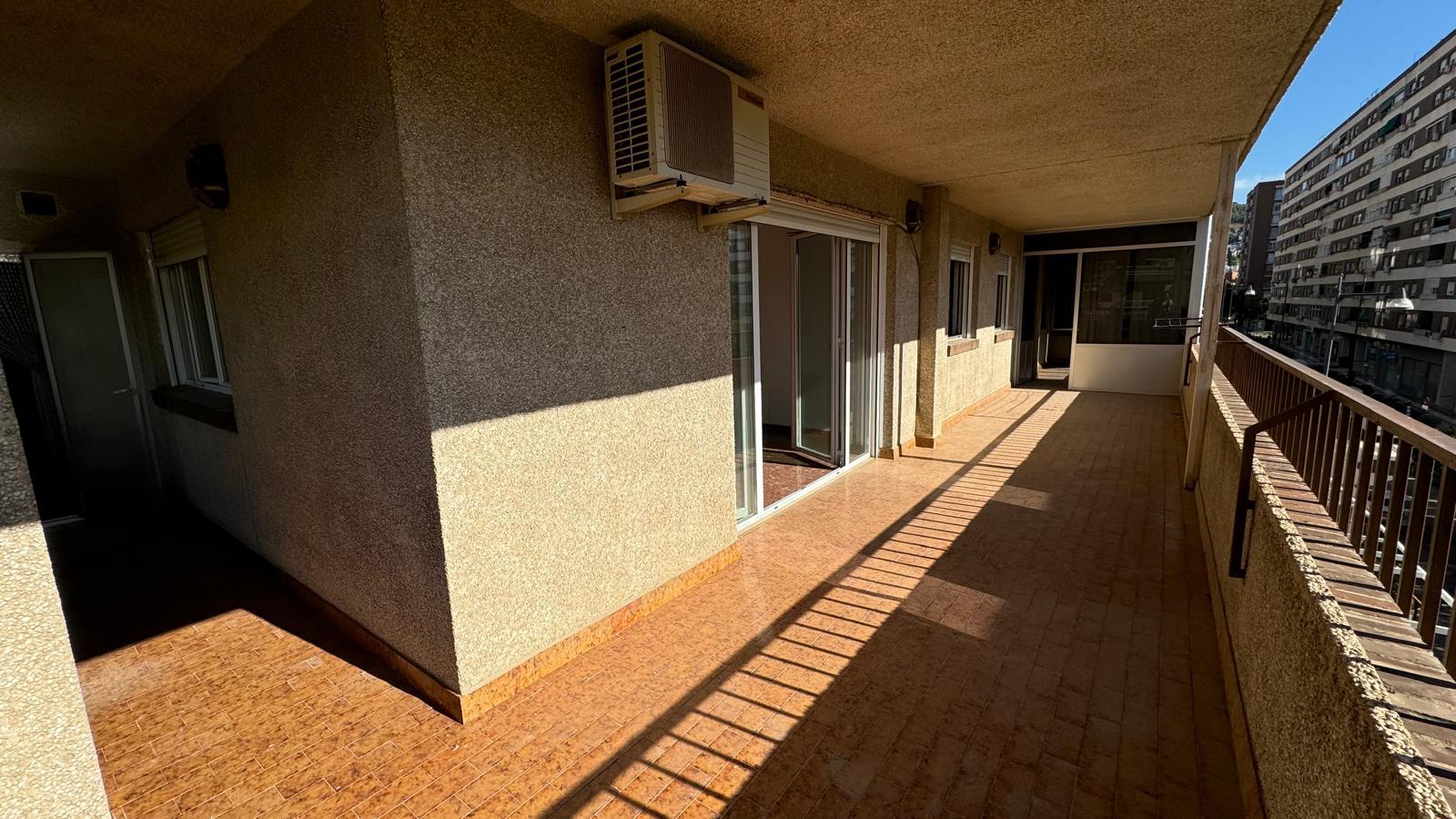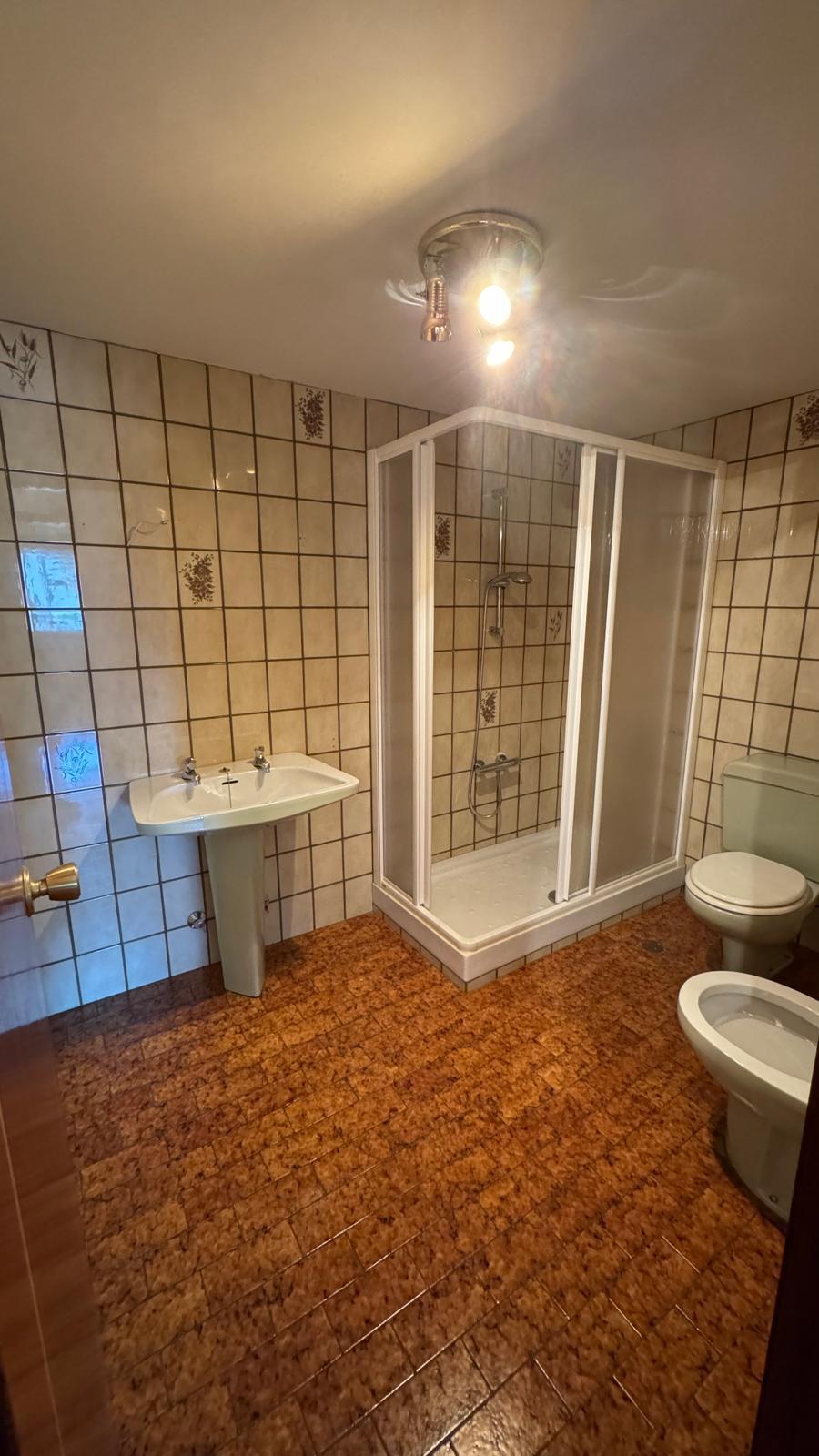 La zona de descanso se compone de dos habitaciones dobles con armarios empotrados y una amplia habitación principal destinada a dormitorio de matrimonio. El inmueble dispone de un baño principal equipado con bañera y un aseo adicional con plato de ducha, ambos bien conservados. Toda la vivienda está rodeada por una gran terraza luminosa, que aporta luz natural a todas las estancias. Parte de esta terraza se encuentra acristalada, permitiendo su disfrute durante todo el año. El edificio dispone de preinstalación individualizada de placas solares y suministro de gas ciudad, aportando eficiencia y confort.